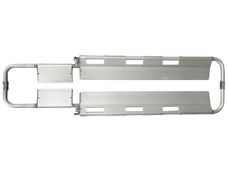 Sa robuste structure en aluminium extrudé et la forme des deux lames pouvant se séparer ont été étudiés pour faciliter au maximum son passage sous le corps et aussi garantir une bonne stabilité pour le transport.