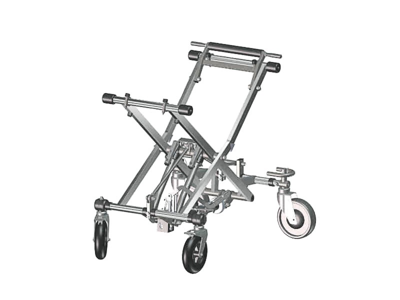 Il est muni d’une pompe oléodynamique actionnée par une pédale qui permet d’élever le cercueil à la hauteur souhaitée sans aucun effort et en toute sécurité, il est muni également d’une pédale qui permet de baisser le cercueil à la hauteur souhaitée.
