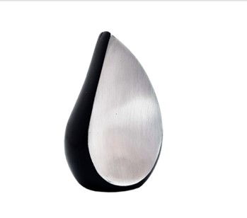 Mini-urne en forme de goutte noir et argent intérieur martelé