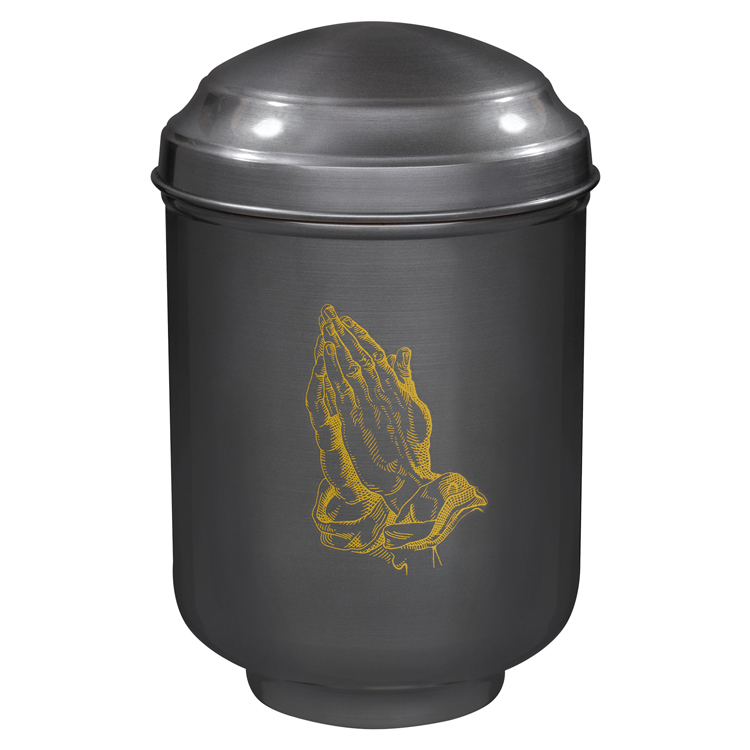 Urne en cuivre grise avec main