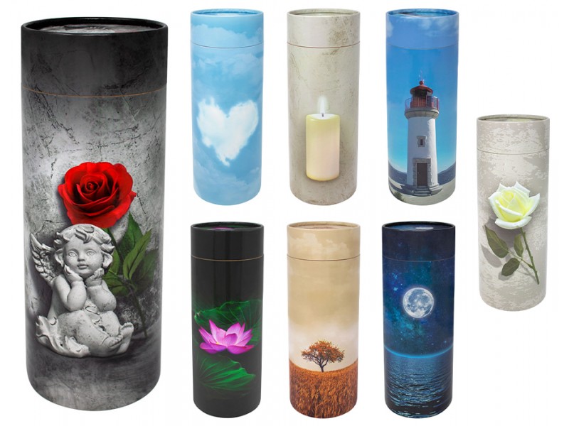 L’incontournable urne tube pour dispersion qui trouvera toute son originalité dans les différentes illustrations proposées.